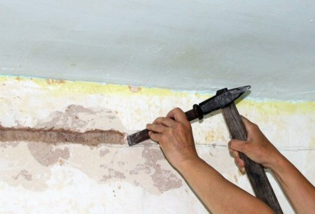 При разводке по потолку запрещается штробление железобетонных перекрытий, так как это может ослабить плиту и привести к аварийной ситуации. Делать штробы можно в слое штукатурки.
