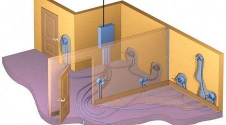 Это скрытая проводка, не требующая штробления. Кабели в трубах укладываются в стяжку, что считается надежнее прокладки по стенам.
